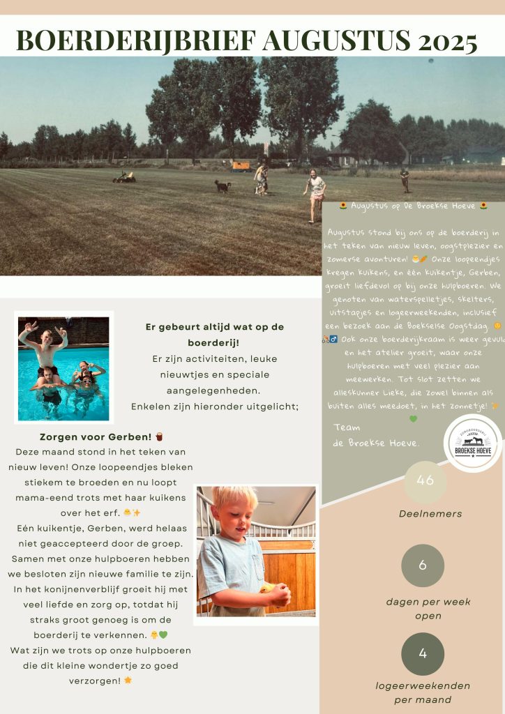 Via deze boerderijbrief blijf je op de hoogte van (aankomende) activiteiten, leuke nieuwtjes en speciale aangelegenheden. De boerderijbrief verschijnt elke maand.